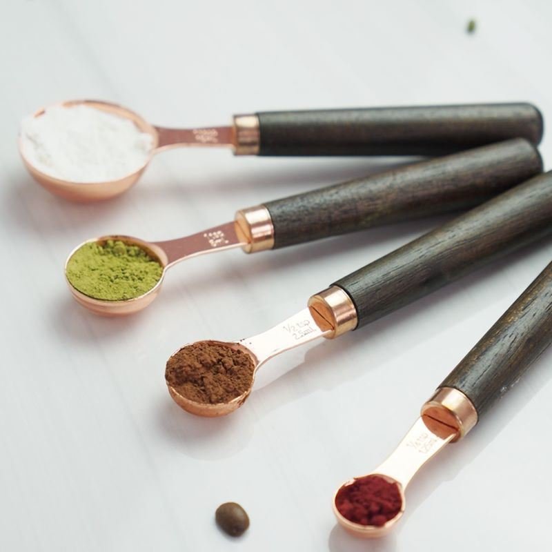 Home > Kitchen Accessories 4Pcs/Set Measuring Cups Spoons Stainless Steel Plated Copper Wooden Handle Cooking Baking Tools